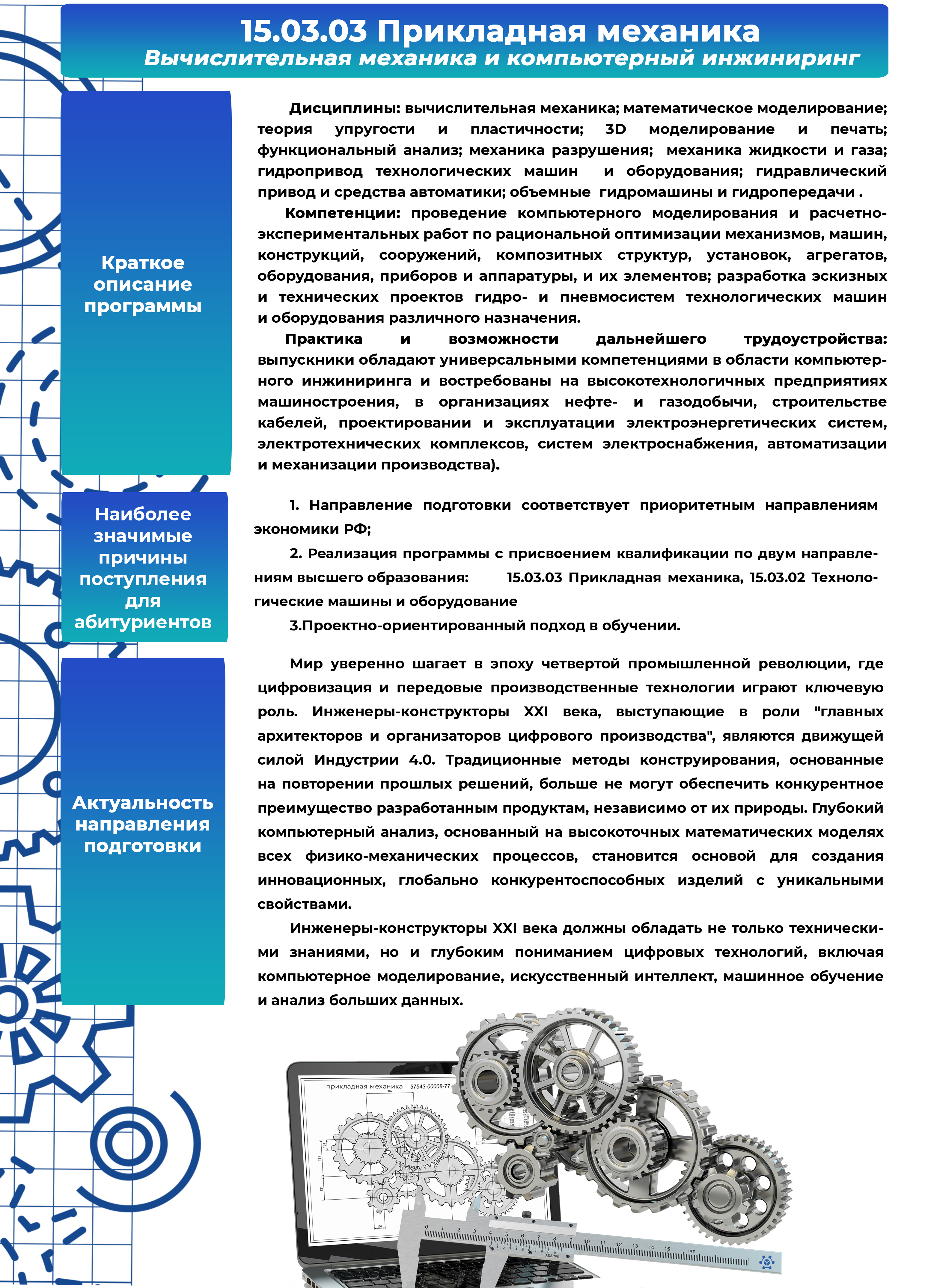 **По окончании обучения будет выдан диплом о высшем образовании с указанием двух направлений 15.03.03 Прикладная механика, 15.03.02 Технологические машины и оборудование.