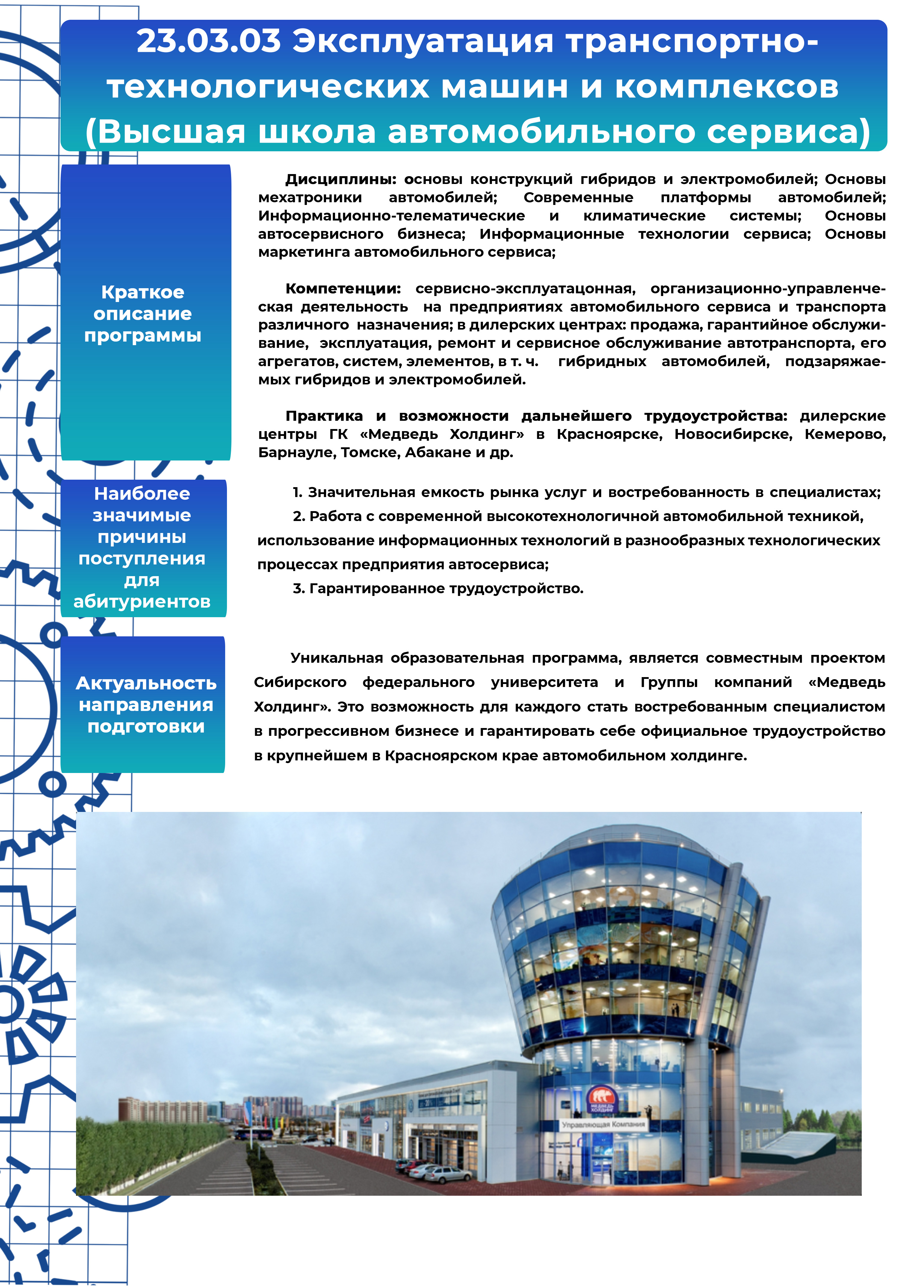 | 23.03.03 Эксплуатация транспортно-технологических машин и комплексов (Высшая школа автомобильного сервиса) | 15 | 20 | 58 695 руб. |