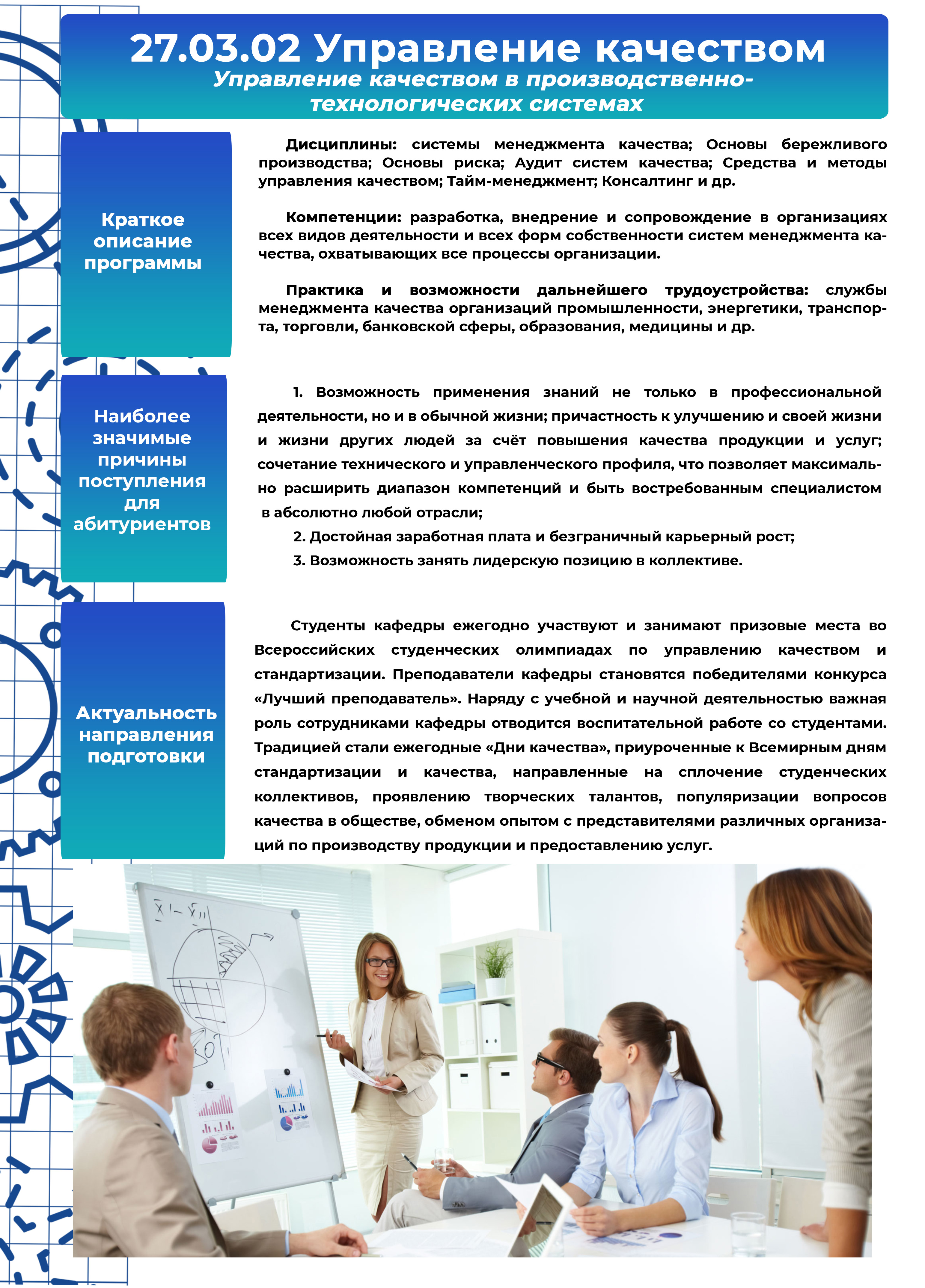 | 27.04.02 Управление качеством | 27.04.02.02 Менеджмент систем качества | 11/2 | Управление качеством (письменно) | 233 000 руб. |