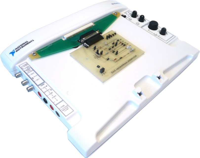 Оборудован учебный класс на 9 рабочих мест. Каждое рабочее место состоит из компьютера, лабораторной станции NI Elvis II и другое аппаратное обеспечение фирмы NI. Установлено лицензионное программное обеспечение для изучения современных подходов применения компьютерных измерительных систем.