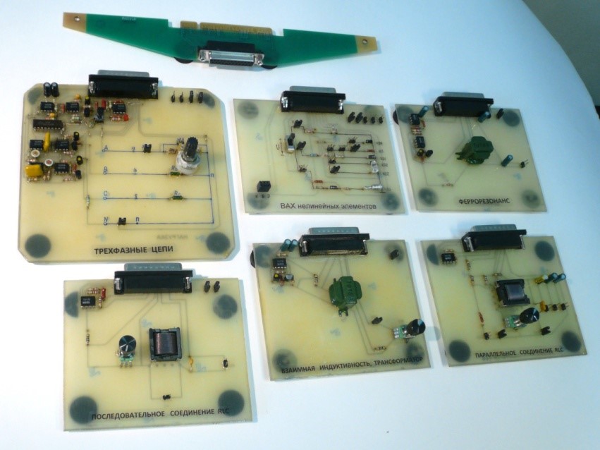 - Разработка и изготовление электронных плат для учебного лабораторного оборудования по изучению дисциплин в системе непрерывного профессионального образования электротехнического профиля с применением компьютерных технологий. К настоящему времени изготовлено 300 электронных плат для этих целей.