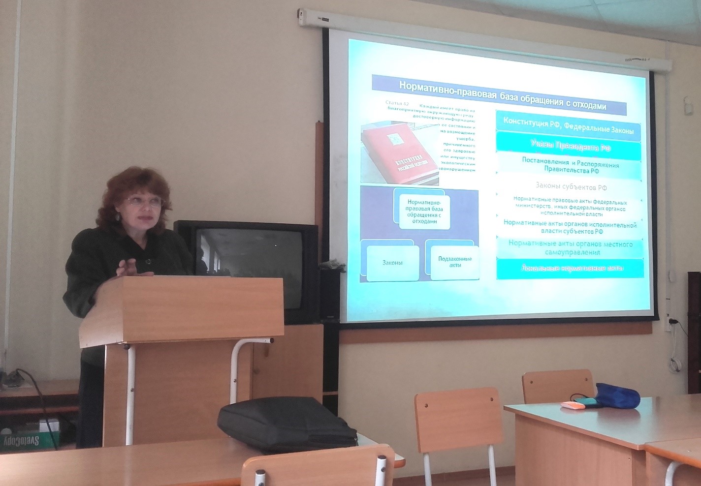 Магистранты кафедры ИЭиБЖД Политехнического института прослушали цикл лекций и семинаров д-ра техн. наук, профессора Иркутского национального исследовательского технического университета Зелинской Елены Валентиновны по проблемам управления отходами. Занятия проводились в Институте цветных металлов и материаловедения. Во время лекций был представлен отечественный и зарубежный опыт в области обращения с отходами.