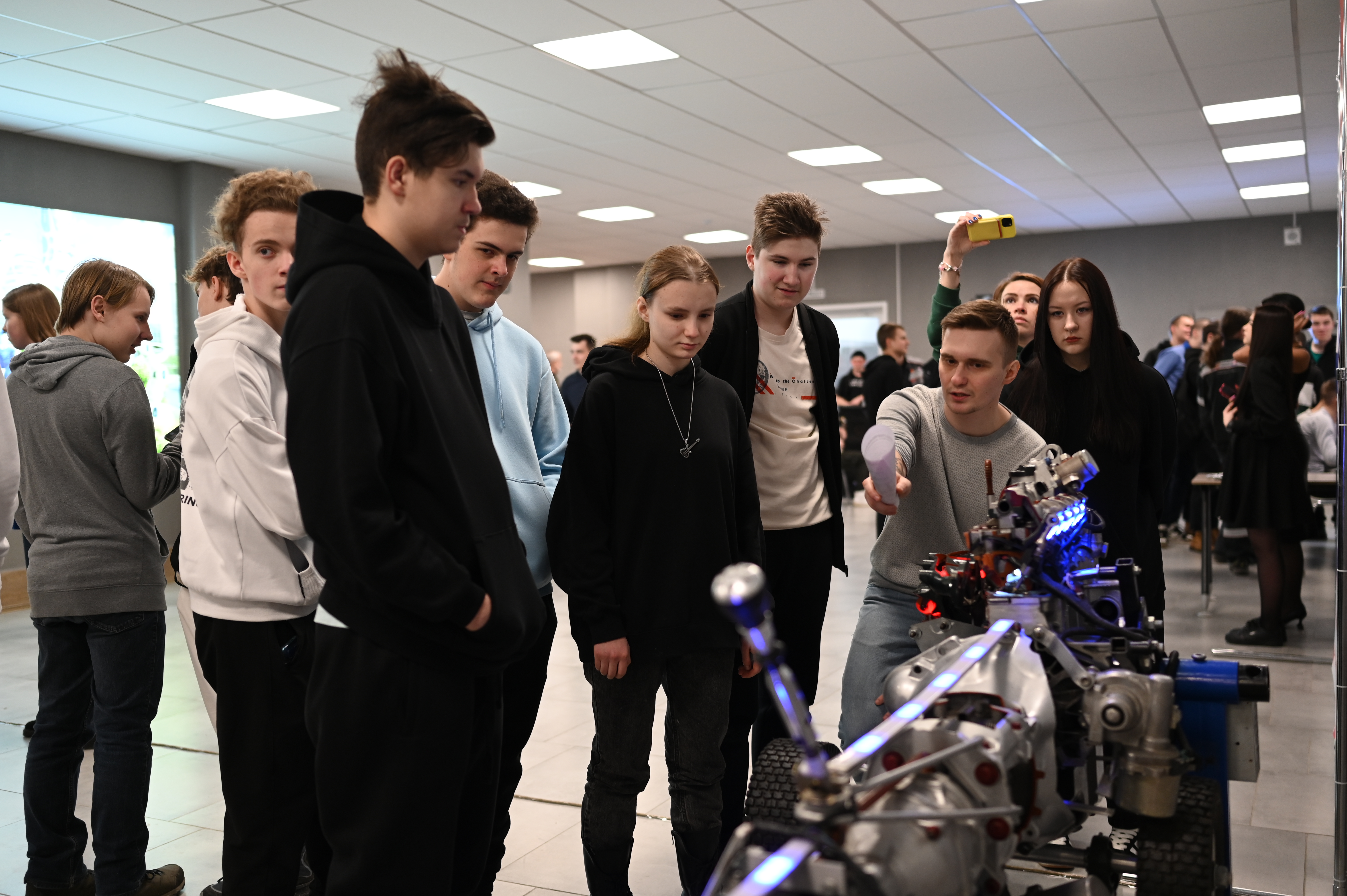 В мероприятии приняли участие учащиеся инженерной школы "Красноярская университетская гимназия No1-Универс", которые проявляют интерес к инженерным науками, и в частности, сфере автомобильного сервиса.
